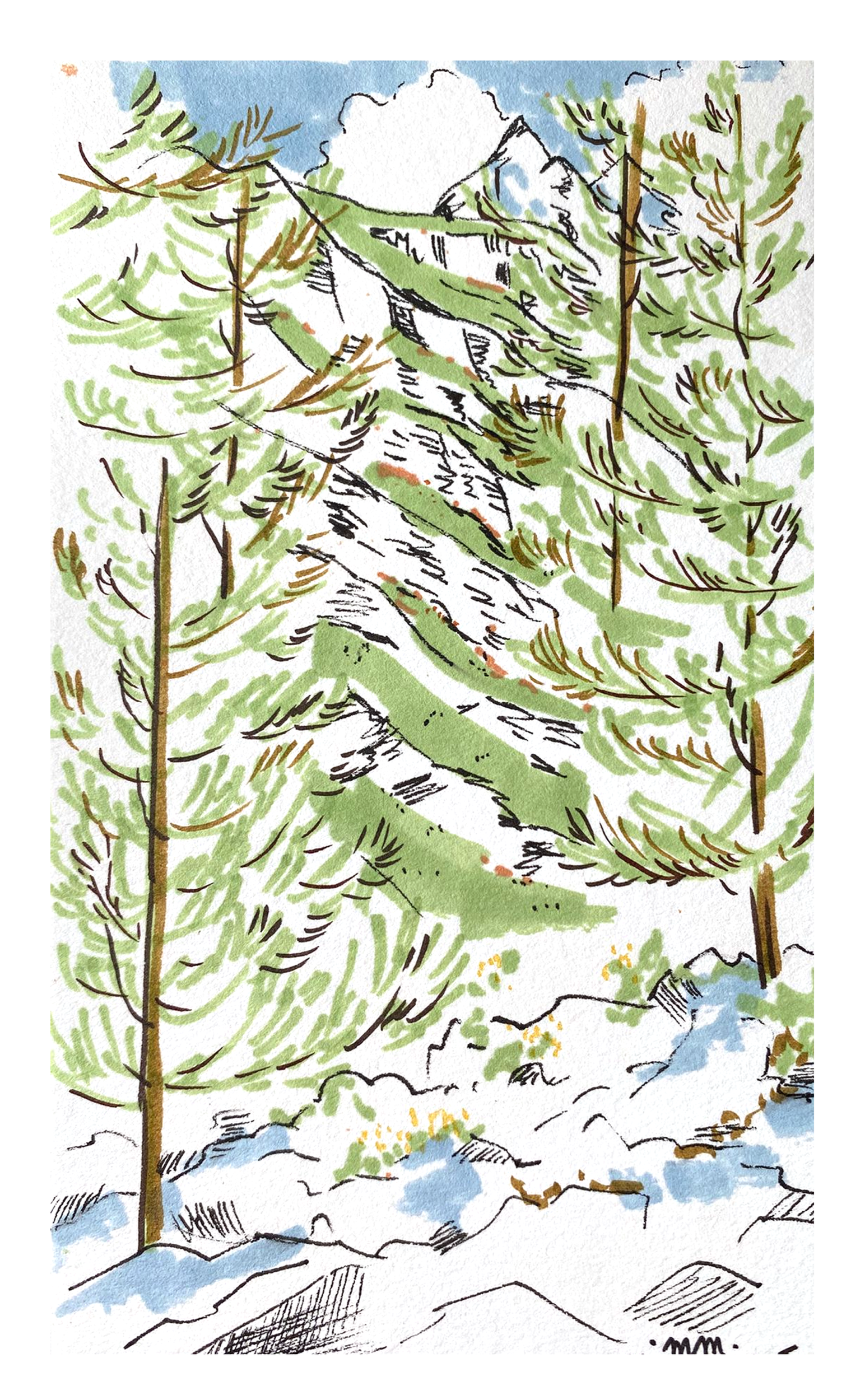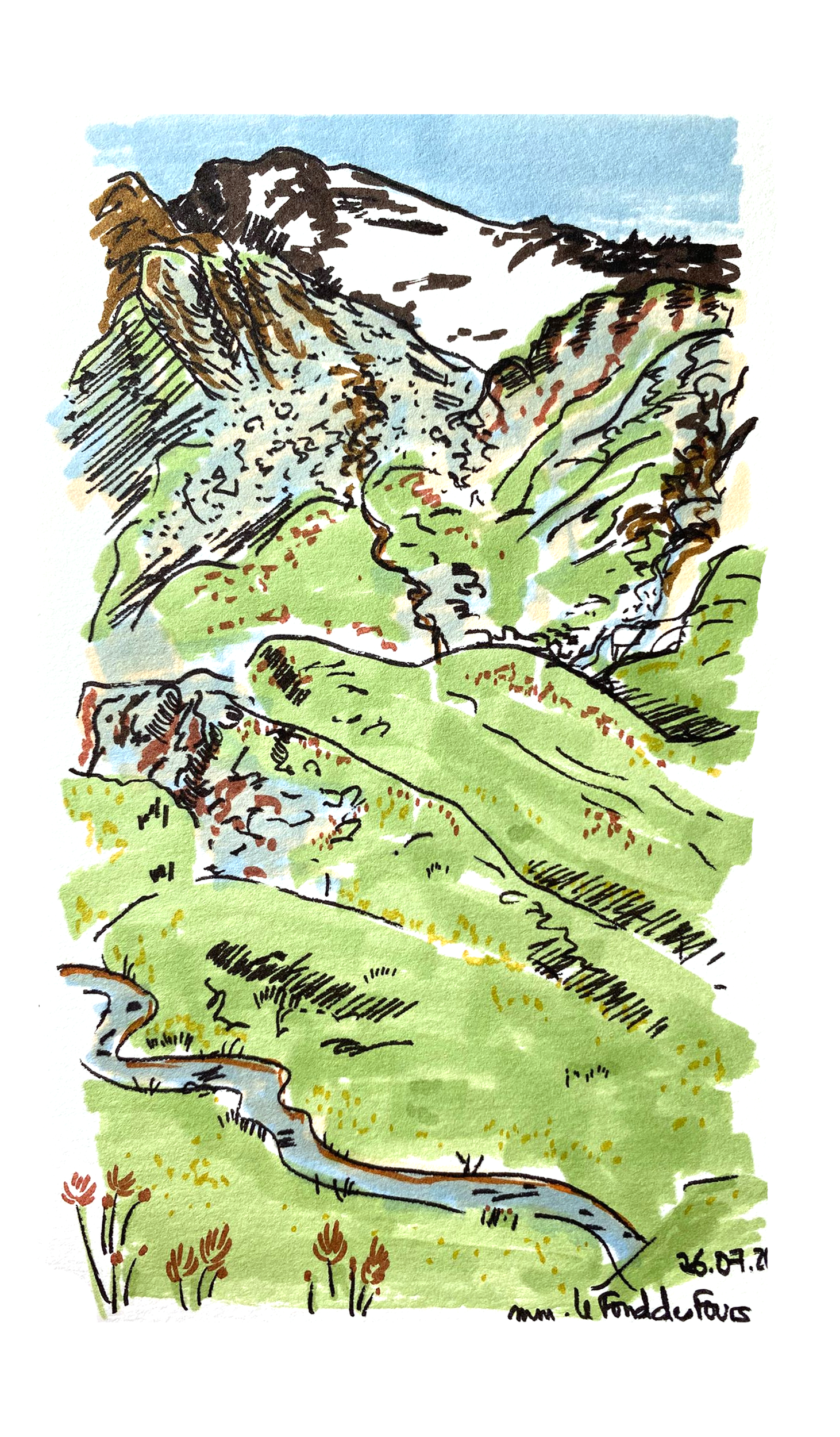 Randonnées à Val d’Isère, feutres, 2024.